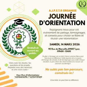 Viens ¨¦changer avec des jeunes professionnels exp¨¦riment¨¦s qui viendront pr¨¦senter les cl¨¦s d¡¯une r¨¦orientation r¨¦ussie, faire d¨¦couvrir les fili¨¨res qui recrutent, orienter vers des choix strat¨¦giques pour ton insertion professionnelle, partager leurs exp¨¦riences et les erreurs ¨¤ ne pas commettre.Journ¨¦e d'orientation - Par l'AJPETR