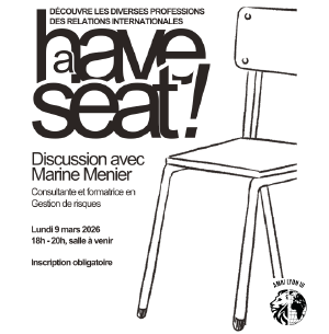 Dans le cadre du concept Have a Seat, participez ¨¤ une rencontre avec Marine MENIER, consultante et formatrice en gestion des risques, autour de son parcours et des enjeux du m¨¦tier.Have a Seat : discussion avec Marine MENIER - Par l'AMRI Lyon 3