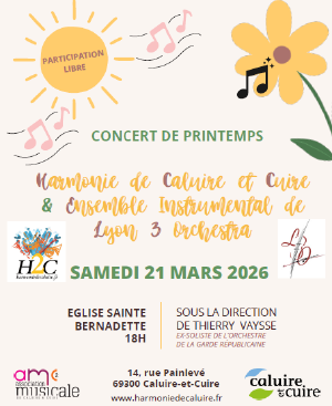 Retrouvez l'ensemble instrumental de Lyon 3 Orchestra et l'harmonie de Caluire et Cuire autour d'un programme r¨¦unissant des ?uvres originales et des pi¨¨ces de Bach-Vivaldi, Mozart, Weber et Mascagni.