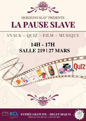 Plongez dans les cultures des pays slaves le temps d¡¯une apr¨¨s-midi conviviale et immersive ! Au programme : quiz, musique, d¨¦gustation, film/dessin anim¨¦.La pause slave - Par Horizons Slav' et le CCL