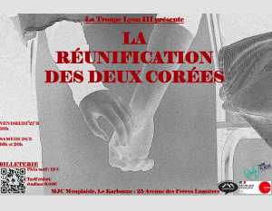 Cette ann¨¦e, la troupe vous pr¨¦sente une pi¨¨ce de Jo?l POMMERAT : La R¨¦unification des Deux Cor¨¦es (non, la pi¨¨ce ne parle pas de g¨¦opolitique). Vous serez transport¨¦ entre histoire familiale, d'amour et d'amiti¨¦, toutes plus d¨¦faillantes les unes des autres !