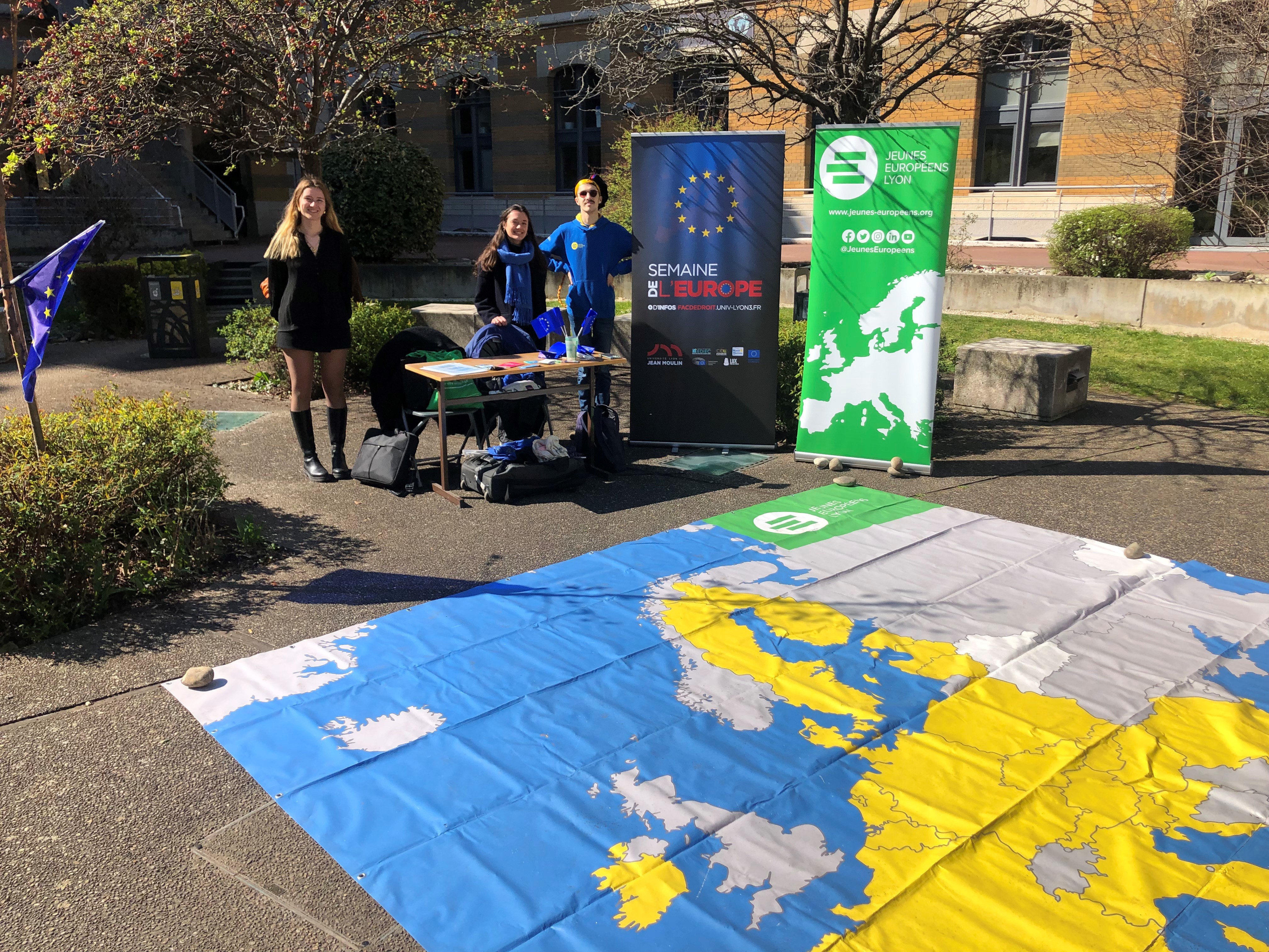 Les jeunes européens ont pour objectif d'informer et promouvoir la construction européenne par le biais d’actions de rue, de conférences, de café-débats et d’interventions au plus près des jeunes en établissements scolaires. N'hésitez pas à venir pour échanger avec eux !